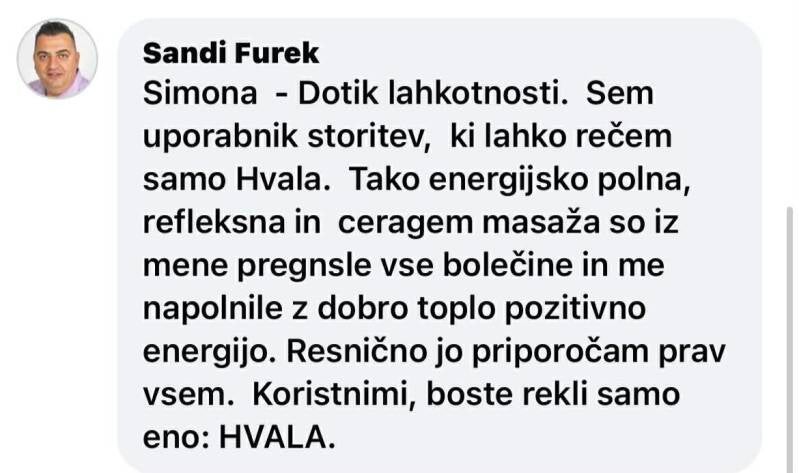 Sama verjamem, da masaža resnično lahko spremeni počutje in življenje. Pred leti sem sama prestala bolečine, napetosti in izgorelost, zato sem razvila pristop, ki resnično pomaga telesu in duhu postati lahkotnejši. Danes z veseljem delim svojo izkušnjo in znanje z drugimi.
